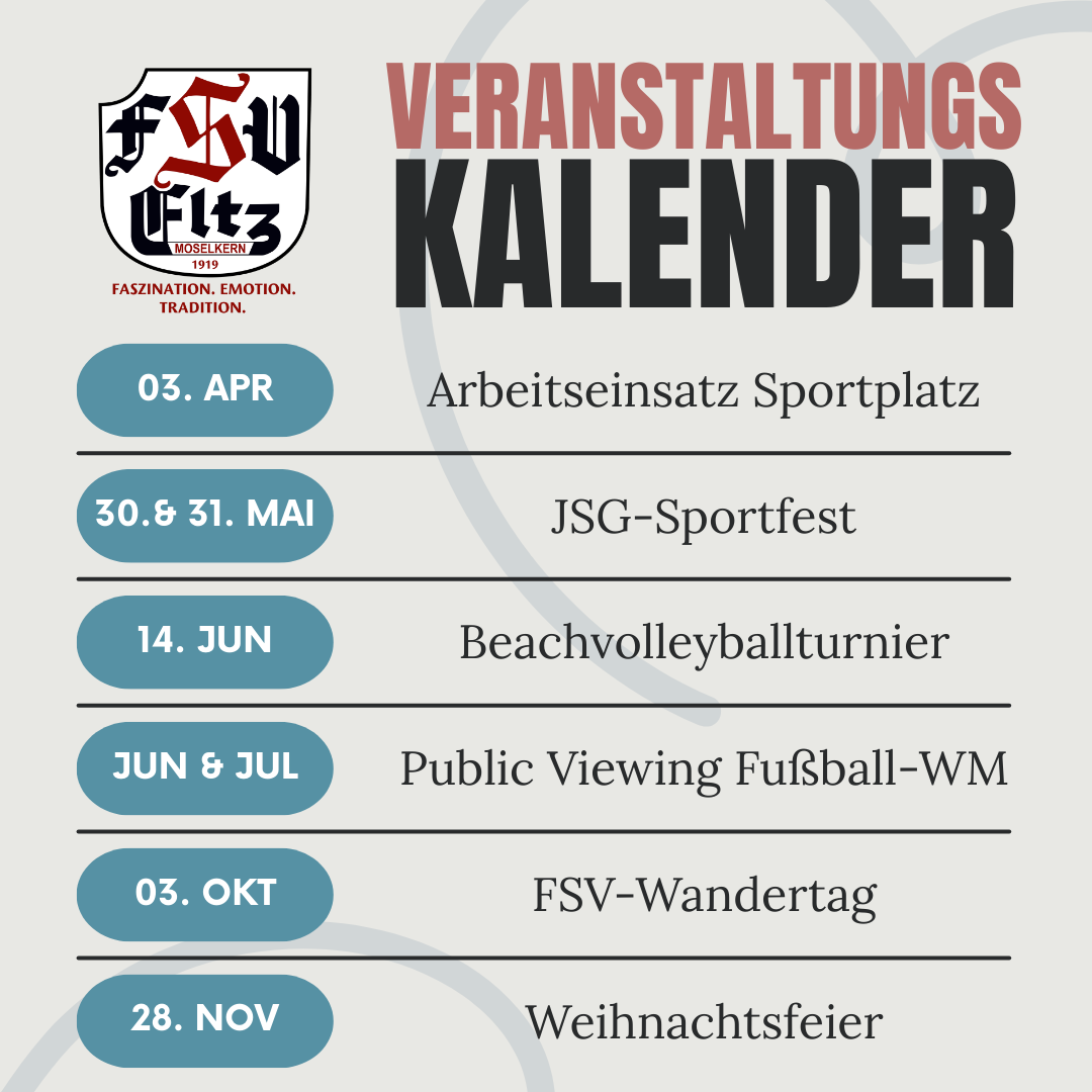 Freut euch auch in diesem Jahr auf verschiedene Veranstaltungen und weitere Highlights. Mit unserem Kalender habt ihr alle wichtigen Termine auf einen Blick - Merkt euch diese frühzeitig vor.